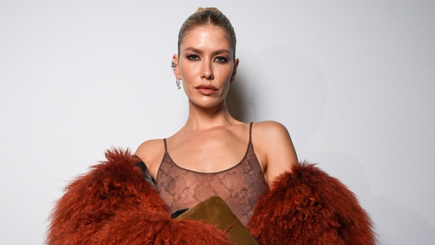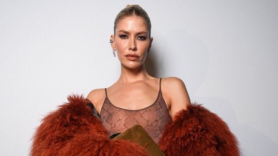 Модель Елена Перминова снялась в платье с разрезом до бедра