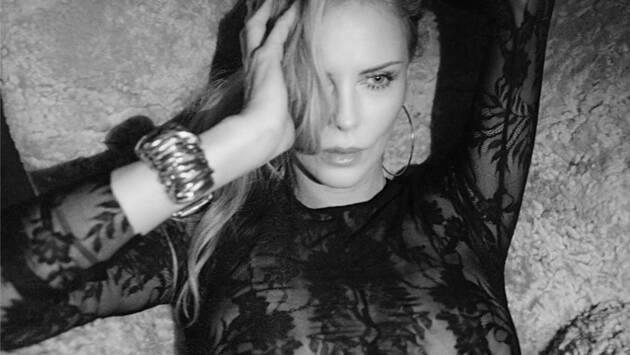 50-летняя звезда фильма «Безумный Макс: Дорога ярости» предстала перед камерой в черном кружевном комбинезоне, сквозь прозрачную ткань которого просвечивали трусы со средней посадкой. При этом на размещенных кадрах видно, что Терон не стала надевать под изделие бюстгальтер.