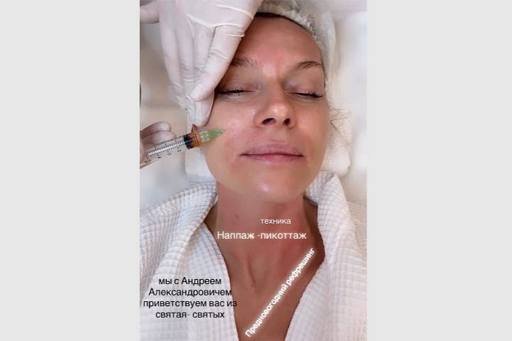 При этом звезда продемонстрировала внешность без макияжа во время косметической процедуры. На кадрах специалист вводил в лицо артистки инъекции.