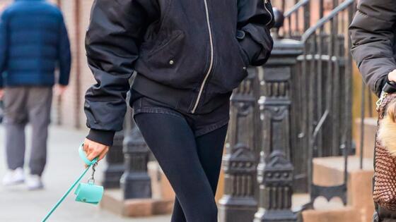 На прогулку звезда вышла не одна. Шейк вела на поводке собаку породы мальтипу, а рядом с ней шла восьмилетняя дочь Лея, рожденная в отношениях с актером Брэдли Купером. Девочка была тепло одета — в шапке и шарфе, чтобы не замерзнуть в прохладную погоду.