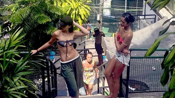 21-летняя Дева Кассель предстала перед камерой в темно-синем лифе бикини, зеленых спортивных шортах и черных сланцах. Модель дополнила пляжный образ кепкой, анклетом и золотым поясом. Манекенщица была запечатлена с распущенными волосами на лестнице.