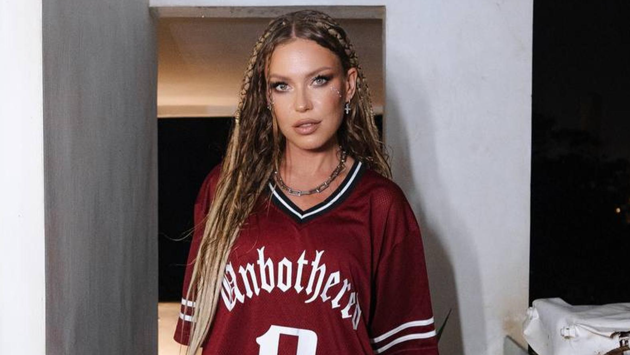 Дакота придерживается характерного калифорнийского стиля, отдавая предпочтение открытым нарядам в духе бохо. Для фотосессии Рита выбрала чёрный кроп‑топ с длинным рукавом, подчёркивающий декольте выразительным вырезом и открывающий нижнюю часть груди, а также оливковые брюки карго с завышенной талией. В качестве аксессуара певица подобрала объёмную сумку‑тоут в фирменных коричневых тонах Gucci.