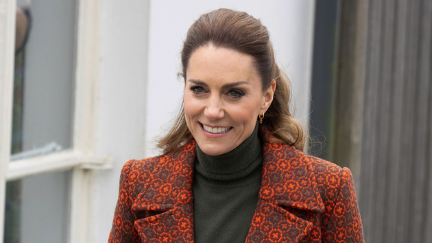 3 февраля Кейт Миддлтон посетила фабрику Melin Tregwynt, которая изготавливает шерстяные изделия с традиционными валлийскими узорами. Принцесса Уэльская выбрала для выхода на публику шерстяное оранжевое пальто с геометрическим узором, темно-зеленую водолазку и брюки с высокой талией того же оттенка от бренда Виктории Бекхэм. Жена принца Уильяма завершила образ золотыми серьгами-кольцами, ремнем и туфлями на каблуках.