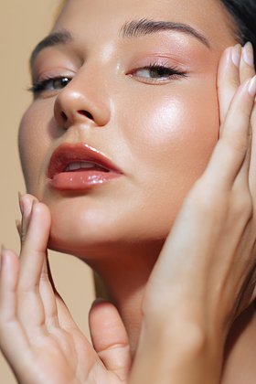 полупрозрачные текстуры — увлажняющий крем с тоном, обязательно влажный сияющий финиш; аккуратно уложенные брови — отсюда в 2025-м бум на гели для бровей с эффектом ламинирования; минималистичный макияж глаз; оттеночный бальзам на губах и контур коричневым лайнером; легкий румянец — желательно с эффектом обгоревшей на солнце кожи; неизменный акцент на уход даже в декоративной косметике.