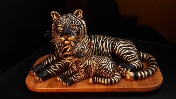 По словам самих художников, технология позволяет экспериментировать с дизайном, поскольку поталь является весьма податливым материалом. От украшений уже плавно перешли к сувенирной продукции. Например, декоративный сплав использовали при создании скульптуры "Тигрица с тигренком", выполненной из темного прессованного янтаря. Характерные полоски на шкуре животных выполнили как раз из золотой потали.