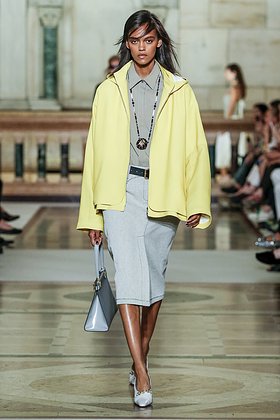 Еще один насыщенный цвет, который сложно сочетать с другими, но невозможно проигнорировать. В своих весенних коллекциях Prada и Tory Burch сочетали канареечный желтый с черным, Miu Miu «поженили» его с зеленым и оранжевым, а Bottega Veneta предложили носить шелковую одежду этого витаминного оттенка.