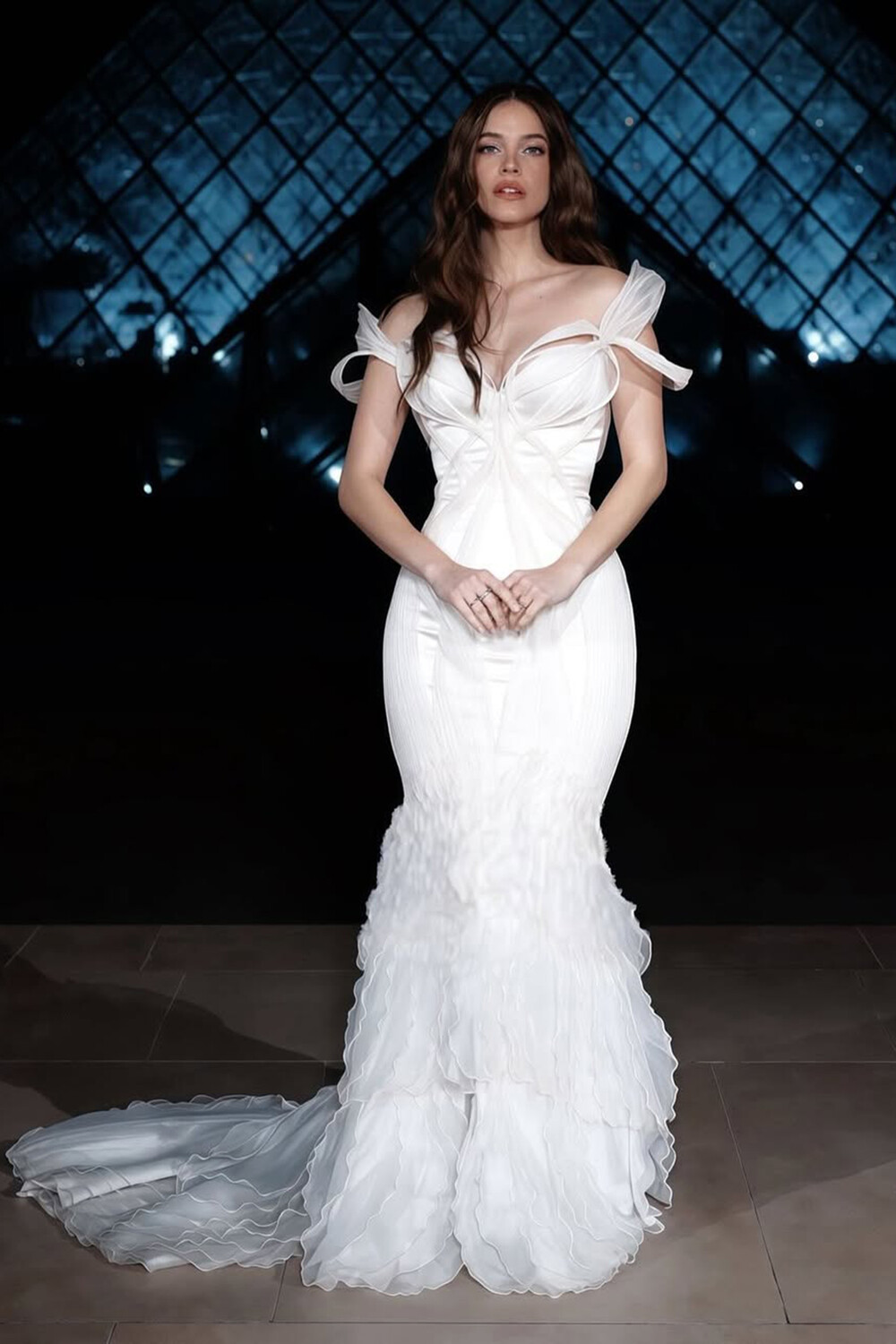 Барбара Палвин предпочла для выхода пышное белое платье со спущенными плечами и глубоким декольте. Волосы ей уложили мягкими волнами и сделали легкий дневной макияж. Перед камерами модель появилась вместе с мужем-актером Диланом Спроусом.
