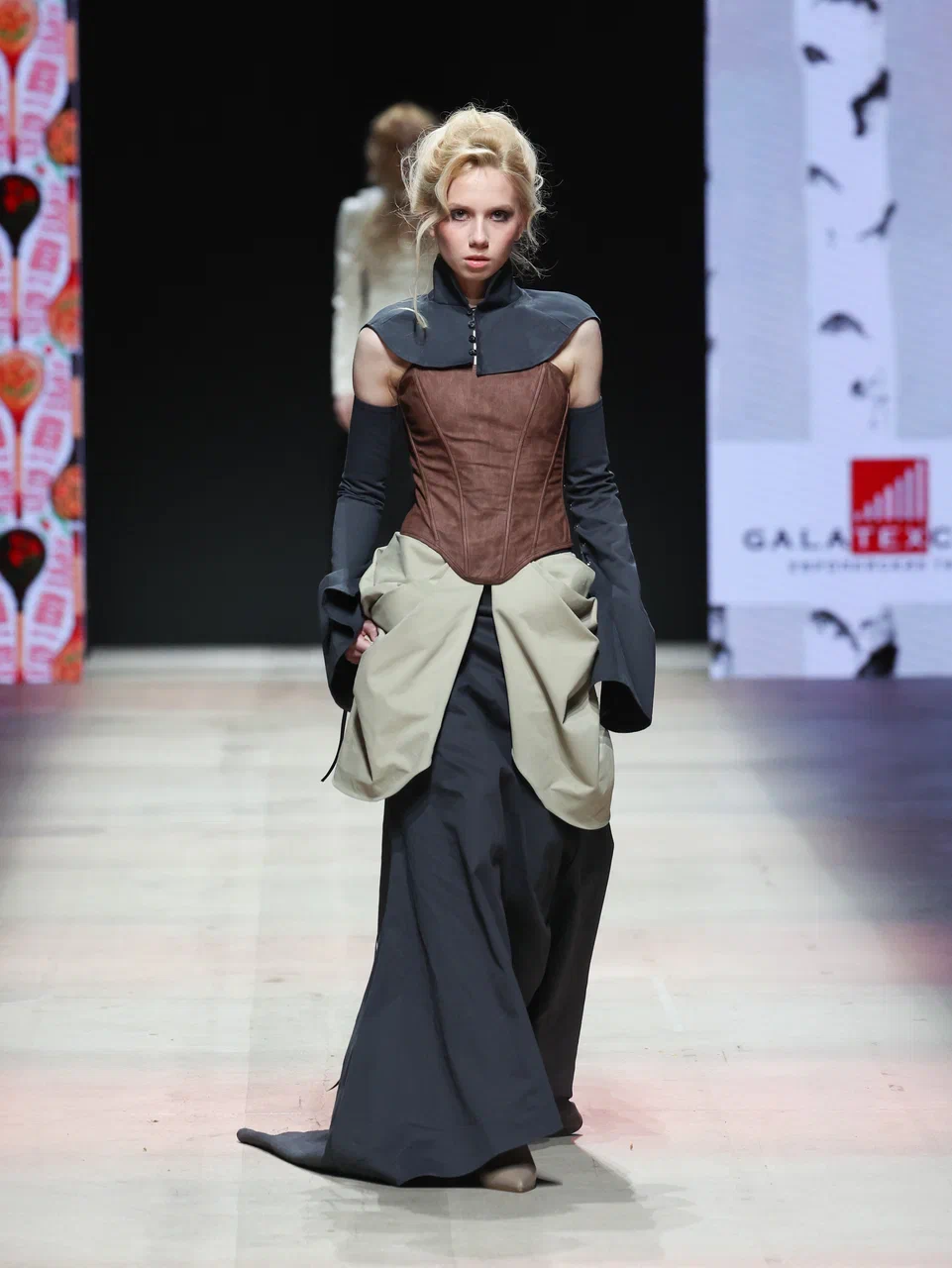 В рамках Московской недели моды экспериментальную коллекцию представил бренд «Ателье Аргир». В основу линейки легли асимметричные силуэты, декоративные трещины, формы в виде «гриба» и элементы защитной одежды и брони.