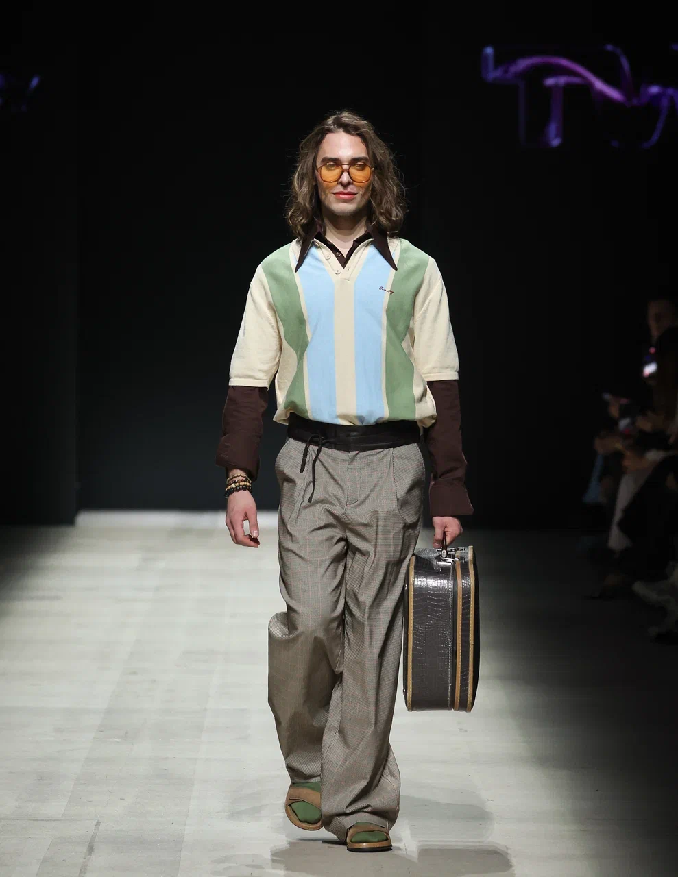 В коллекции Two Joy элегантная классика преппи соединяется с самовыражением. Клетка сочетается с полосатым принтом и расслабленным кроем, а уютная цветовая гамма дополняется энергичными акцентами: бескозыркой с помпонами, очками в духе 80-х и цветными колготками. В основе коллекции — трикотаж как ключевой элемент гардероба: качественная пряжа и выразительные фактуры формируют эмоциональные, характерные образы. Мужские и женские силуэты раскрывают универсальность материала и его способность становиться смелым модным заявлением.