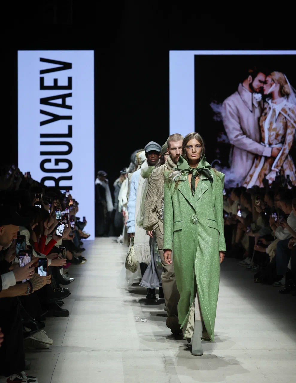 Завершал шестой день Московской недели моды бренд IgorGulyaev, представив коллекцию «В твоих объятиях». Игорь Гуляев, создатель модного дома, вдохновлялся темой эмоциональной близости и тихой силой, которую несут человеческие отношения. Чтобы передать чувства защищенности и гармонии, креативный директор обратился к пластичным силуэтам, мягким фактурам и приглушенной палитре. В качестве акцентных элементов выступили меховые шапки-ушанки, головные уборы из разных эпох, пушистые накидки, акцентные кейпы и 3D-аппликации.