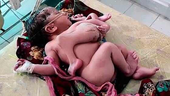 Девочка-мутант с четырьмя ногами и тремя руками родилась в Индии