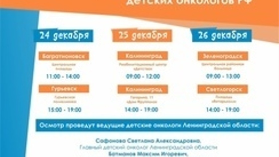 В Калининградской области ведущие детские онкологи из Петербурга бесплатно примут пациентов 24-26 декабря