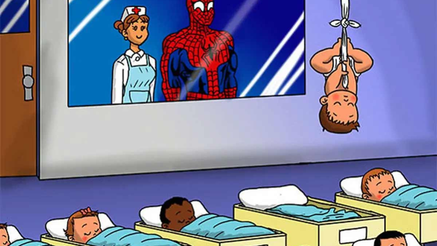 Художник изобразил супергероев новоиспеченными родителями