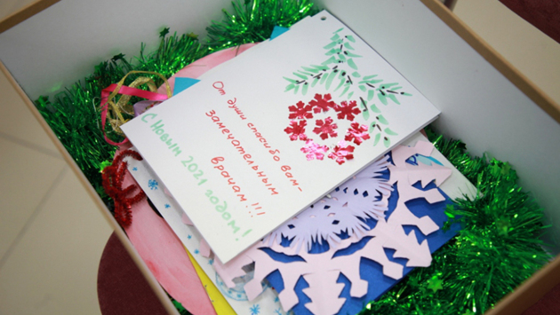 Открытки с сочинениями детей будут размещены на новогодних елках в отделениях больниц с действующими «красными зонами».