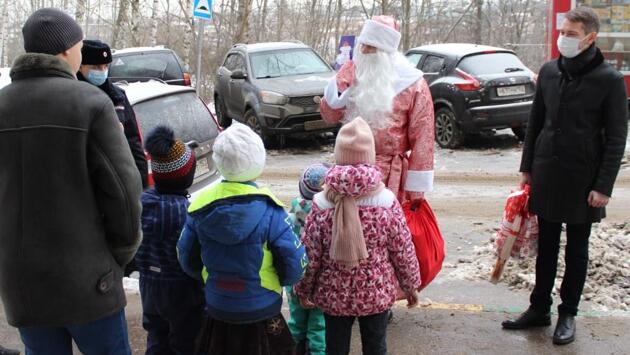 Маленькие нижегородцы начинают получать поздравления от полицейского Деда Мороза