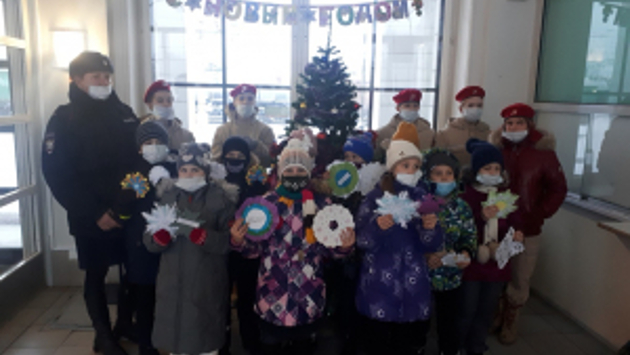 В честь Нового 2021 года, символом которого является снежинка, транспортные полицейские организовали акцию «Снежинка с пожеланием». На железнодорожной станции Волховстрой-1 при поддержке Всероссийского военно-патриотического общественного движения «Юнармия» полицейские и второклашки Волховской общеобразовательной школы № 7 подарили пассажирам снежинки. Ребята заранее подготовили «волшебные» снежинки, которые надо было не только вырезать, украсить, но и написать на них теплые пожелания. В приподнятом настроении школьники поздравили пассажиров, находящихся в зале ожидания железнодорожного вокзала, работников вокзала и пожелали счастья и добра каждому. Вместе с тем транспортные полицейские с детьми встретили прибывший электропоезд из Санкт-Петербурга, и вручили каждому гостю древней земли Волхова по «Снежинке с пожеланием». Кроме того, второклассники сделали своими руками огромного бумажного зайца с новогодним поздравлением и подарили его инспекторам отделения по делам несовершеннолетних ЛО МВД России на станции Волховстрой. Ценность подарка заключается в том, что он выполнен по технике поделки и аппликации из нарисованных ладошек. А это значит, что каждый ребенок вложил в подарок частичку своей светлой души. Поэтому дети назвали свой подарок - «Загляни в душу».
