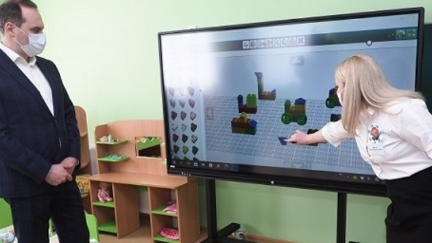 Стоит отметить, что детский сад предлагает большие возможности и для развития музыкальных способностей малышей. Например, здесь есть цифровое фортепиано. Глава Мордовии оценил его звучание и остался доволен.