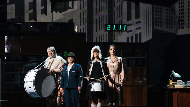 Невероятно простая, но очень точная сценография переносит нас во времена Советского Союза. На сцене знаменитая чехословацкая стенка – символ того времени. Она переходит в полноценную стену, олицетворяющую одновременно и кремлевскую ограду, и железный занавес, и советские бетонные заборы. А члены Политбюро периодически идут «в народ»: сидят прямо в ложах и расхаживают по театральным ковровым дорожкам в зале. Все это активно вовлекает зрителя в происходящее на сцене. И лишь вкрапления видеоряда из современных комиксов подчеркивают всю сюрреалистичность действия. Эта история – словно сон: не реальный, но и не ирреальный.
