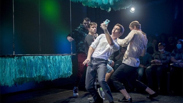 "Я танцую как дебил" — премьеру с таким интригующим названием давали 13 октября в Рязанском театре драмы. Мудрые люди говорят, что первые 40 лет детства — самые сложные в жизни мальчика. Рязанский драматург Игорь Витренко и режиссер Арсений Кудря показали, в чём же трудность. Спектакль идёт в большом зале, но в малой форме. Зрительские места расположены на сцене, актеры совсем близко, но ещё ближе их делает постоянная съемка, тут же транслируемая на экраны. В кадр попадают зрители, на заднем плане видны прохожие — и кажется, что действие разворачивается среди нас, в тесном кругу коллег и знакомых. На узнаваемость работают и типичные персонажи провинциального масштаба: инфобизнесмен-достигатор, "продавщица", эгоцентричный подросток, дедушка в свитере с оленями, женщина в поиске и, конечно, главный герой. Анатоль Сергеич, Толик, живёт простую, но не лишенную радостей жизнь в папиной хрущевке. Работает заместителем директора в салоне связи, смотрит ужастики, слушает рэпчик, клянчит смешные футболки у сына, переписывается с бывшей. Он давно плывёт по течению, но в его случае река судьбы имеет конкретный причал — по давнему предсказанию Толик скоро встретит любовь своей жизни. И пусть девушка на 17 лет моложе, как это может остановить мужчину, который в курсе, что говорить "хайп" — это уже кринж?! Толя молод душой, а значит, всё может получиться. Можно сказать, что "Я танцую как дебил" — пьеса о конфликте отцов и детей, ведь в борьбе за Ксюшу герою придется соперничать с сыном. Есть в спектакле и тема любви как приза, для завоевания которого надо проявлять смелость и инициативу. Сильные женские персонажи дают повод отвлечься на глобальные мысли о том, кто в семье голова, а кто шея. За всеми этими сюжетами скрывается актуальный вопрос (это и делает спектакль современным, а не непривычная для Рязани форма) — есть ли у человека право прожить свою жизнь как умеется? Странно танцевать, верить в пророчества, задавать себе в сорок лет вопрос "Кем я хочу быть, когда вырасту?", не быть достигатором, носить дурацкие футболки… Авторы разрешают Толику быть собой настоящим — и мир не рушится. Близкие любят его таким и остаются рядом, временные попутчики идут своей дорогой, и вся эта экзистенциальная драма сорокалетнего мужчины для случайного зрителя не больше, чем анекдот в курилке. Пожалуй, это освобождает.