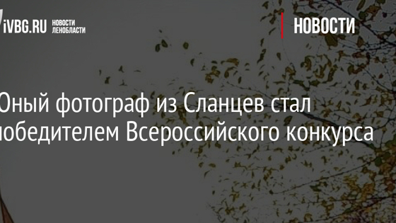 Юный фотограф из Сланцев стал победителем Всероссийского конкурса