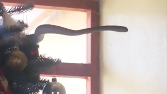 Женщина сдвинула мишуру и увидела голову змеи, которая смотрела прямо на нее. Вся семья отпрянула. Роб храбро сделал шаг вперед, чтобы получше разглядеть змею, и при помощи Google определил, что это бумсланг. Семья позвонила змеелову, который порекомендовал шелестеть упаковкой от подарков внизу и не позволять змее спускаться с дерева. Спустя два часа специалист приехал и снял рептилию с ели при помощи щипцов.