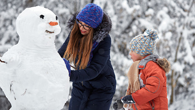 Приготовьте морковь, старый шарф и ведерко и слепите во дворе красивого снеговика, смастерите с детьми кормушку из обрезков досок, фанеры или купите готовый набор для сборки.