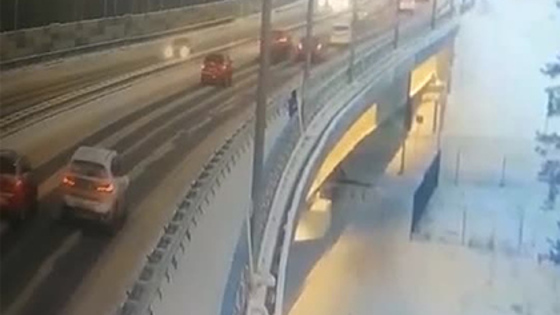 На кадрах видно, как ребенок идет по мосту.