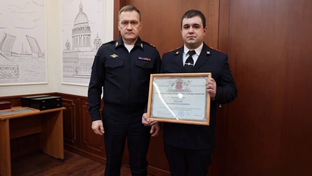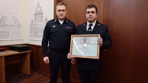 В ГУ МВД России по Санкт-Петербургу и Ленинградской области в торжественной обстановке награжден экипаж патрульно-постовой службы полиции Невского района, благодаря которому удалось спасти трехлетнюю девочку, провалившуюся в полынью на Неве. Как сообщалось ранее, вечером 26 января в полицию поступило сообщение: ребенок, катаясь на ватрушке с горки, съехал на лед в акваторию Невы и попал в полынью. Отец девочки, который находился рядом, пытался спасти дочь, но это ему не удавалось. На место происшествия незамедлительно был направлен наряд патрульно-постовой службы полиции в составе старшего сержанта полиции Юрия Кантонистова и сержанта полиции Дмитрия Ходкевича. Дмитрий обвязал себя тросом, добрался до полыньи и сумел вытащить девочку на лед. Юрий Кантонистов в этот момент страховал коллегу. Благодаря своевременным, грамотным и самоотверженным действиям полицейских ситуация разрешилась благополучно. Ребенок не пострадал. За проявленное мужество и профессионализм обоим полицейским вручены Почетные грамоты ГУ МВД России и денежные премии.