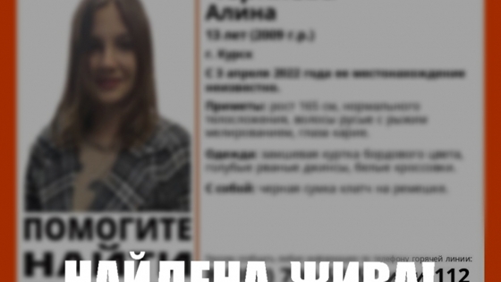 Девочка ушла из дома 3 апреля. Несколько дней сотрудники полиции и волонтеры искали пропавшую школьницу. 13-летняя девочка исчезла 3 апреля. 8 апреля Следственное управление СК России по Курской области начало проверку по факту исчезновения курской школьницы. В субботу, 9 апреля, стало известно, что юную курянку нашли. - Найдена, жива, - сообщили волонтеры поискового отряда "Лиза Алерт". По этическим причинам подробности инцидента не разглашаются.