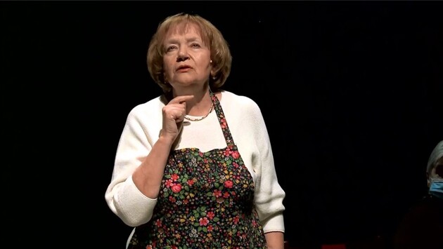 Но солидный возраст ведь не помеха активной творческой деятельности. Так, настоящим событием стала яркая работа актрисы в спектакле "Фаина. Эшелон" на малой сцене театра "Школа современной пьесы". В 2020 году за эту роль Санаева награждена Премией центрального федерального округа в области литературы и искусства, в номинации "Театральное искусство". А в минувшем году спектакль Иосифа Райхельгауза получил премию "Гвоздь сезона" как лучшая постановка, на которой, кстати, всегда аншлаг. ...Героиня – Фаина (Елена Санаева) на сцене занята приготовлением обеда. А сцена — это платформа, символ эшелона. Ее борта снизу поднимают и закрывают... И мы, зрители, сидя за одним длинным некрашеным столом, оказываемся заперты в этом зыбком пространстве. В центре его кипят на настоящей плите кастрюли, дымится сковородка, разложены овощи, доски, ножи... Актриса не спеша, вдумчиво готовит борщ и заодно тихо-спокойно рассказывает от имени Фаины историю своей скромной еврейской семьи. А там не только позитив, как вы понимаете. Эти 18 страниц трудного текста, которые выучила Санаева, слушаешь затаив дыхание — нельзя пропустить ни детали... Все важно. Как родители поженились. Как родились дети. Как хорошо пела мама. Как читала детям Пушкина. Наконец, как началась война и семья из своего колхоза под Одессой уехала в эвакуацию в Узбекистан. Но добрались туда только дети – сестры Фаня и Броня, их родители погибли во время налета на эшелон фашистских бомбардировщиков. А история ведь реальная. Фаина — мать режиссера Иосифа Райхельгауза. Она пережила войну и дожила до 92 лет. А в восемьдесят написала книгу воспоминаний "О том, что… помню… прошло… тревожит". - Это – история нашей семьи, - говорит Иосиф Райхельгауз. - Когда моей маме было восемьдесят лет, я попросил, чтобы она записала свои воспоминания, потому что это факты жизни целого поколения и это должно быть зафиксировано. И мама написала этот текст. Ее память сохранила и хорошее, и ужасное — события предвоенные, военные и послевоенные. Фаина Санаевой вспоминает этот ужас осознанно, без пафоса и надрыва. Она просто информирует нас, как это было. И продолжает тереть морковку, шинковать свеклу и капусту, резать лук, заправлять специями это ароматное варево. Оно станет в финале своего рода причастием для зрителей, которых угостят им по окончании спектакля. Аромат тушеных овощей, еврейские песни, видеокадры фильма-спектакля Галины Волчек и Иосифа Райхельгауза "Эшелон", поставленного в "Современнике" по одноименной пьесе Михаила Рощина, — все это создает особую доверительную, почти семейную атмосферу за общим столом. Как и было принято в еврейских семьях Одессы. Забегая вперед, скажем, что в судьбе самой Фаины все закончится хорошо. Она найдет своё судьбу, создаст счастливую семью с мужем-ветераном, родит детей, станет бабушкой. Но снова и снова возвращается ее память к тому ужасному мгновению потери родителей.. Ее молодая мама навсегда с ней — как видение появляется она под лучами прожекторов в белом платье, пробегая по столам легкой походкой (Татьяна Циренина)... Такой навсегда ее запомнила Фаина. Фаина Райхельгауз. По сути, спектакль интерактивен. Он предлагает нам участвовать в действии. Наши чувства — обоняния, осязания, слуха, зрения — включены на полную мощь. Поэтому когда вдруг пол вагона-платформы вдруг начинает