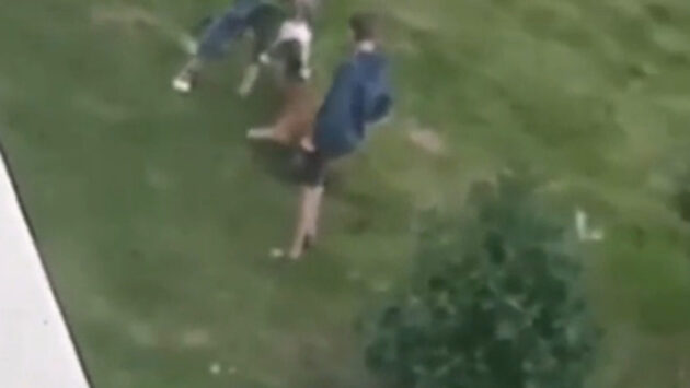 На кадрах видно, как американский стаффордширский терьер кусает спаниеля за голову. Хозяин маленькой собаки – ребёнок, стоит рядом со своим питомцем и не выпускает поводок. В это время хозяйка агрессивного пса пытается оттащить своего питомца. Прохожие также пытаются помочь, обливая бойцовского пса водой.