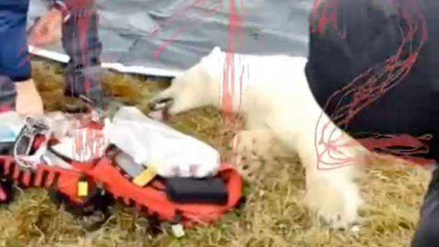 В сети появились кадры, снятые в момент спасения медведицы Монеточки в поселке Диксоне от застрявшей в пасти банки сгущенки. Соответствующее видео опубликовал Telegram-канал 112.