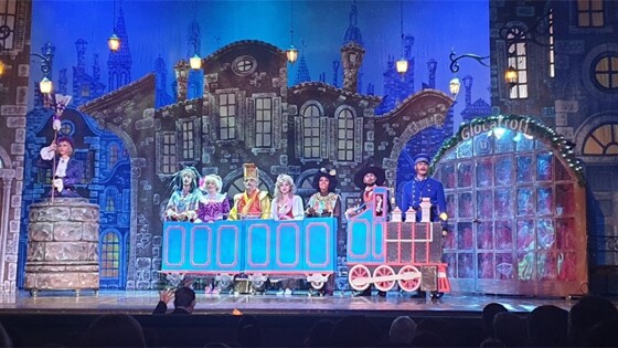 Новая постановка, премьера которой прошла в "Карамболе" в декабре 2021 года, приехала в Москву на всероссийскую ярмарку музыкальных театров. Пьеса и стихи Николая Голя по мотивам сказки Джанни Родари положена на музыку Ирины Брондз, художественного руководителя театра. Режиссер-постановщик Олег Леваков, музыкальный руководитель Ирина Брондз, дирижер-постановщик Дмитрий Богданов, сценограф и художник по костюмам Олег Молчанов, хореограф-постановщик Владимир Романовский и вся команда придумщиков детского представления позиционировала его как волшебное новогоднее чудо. И все вытекающие отсюда последствия, действительно, воплотились на сцене. Яркость, эффектность и зрелищность происходящего вызывали детский восторг и откладывались в памяти. В спектакле по традиции театра "Карамболь" заняты взрослые и юные артисты, учащиеся детской студии театра. Также участвовали балет и оркестр театра. Представитель детской студии Саша Якименко исполнил роль главного героя Франческо. Чистый по тембру сильный голос, точное интонирование вокалом сочеталось с довольно свободной актерской игрой начинающего артиста. В целом вокальная составляющая спектакля была на высоком уровне. Все исполнители выглядели профессионально сильными. Драматическая игра участников не подводила их вокал. Юлия Надервель (Фея) была в центре зрительского внимания, харАктерно владела сценическим стилем мюзикла, разговорным и танцевальным жанром. Сценография, костюмы пестрили красками, поблескивали новогодней мишурой. Великолепные куклы в магазине Феи точь-в-точь были повторены в обликах кукольных персонажей артистов. Трогательная собачка Кнопка, кукла Роза, Китайский император, вождь Серебряное перо, подвижная африканка, капитан, машинист поезда "Голубая стрела" будто сошли с картинок детской книжки. Эта сценическая книжка у питерцев выглядела дорогой и богато украшенной иллюстрациями. Вкус создателей не подвел, хотя деталей, сценографических подробностей в декорациях и костюмах было предостаточно. Два вора Чезаре и Витторе Алексея Бондаренко и Мирослава Федючека получились весьма обаятельными и импозантными, ловкими и гибкими пройдохами. Сцены ожившего Памятника, персонажа Андрея Котова, вызывали юмор у детей, а взрослым были даны намеки на Каменного гостя. Немного зашкаливала громкость микрофонов у исполнителей, вполне можно было уменьшить подачу в зал. После завершения спектакля осталось впечатление добротной традиционности увиденного. Особой новизной сюжет, музыка и сама постановка не отличались, но всё вместе создало послевкусие гармоничного баланса и визуальной привлекательности. Без сомнений, мюзикл получился нарядным праздничным спектаклем для хороших девочек и послушных мальчиков. Подчеркнутая эстрадность музыкального материала вселяла радостное настроение и ритмический завод драйва.