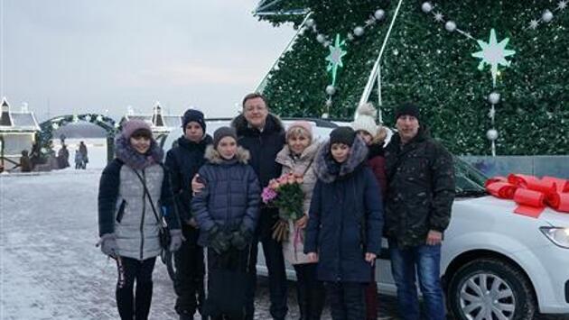 После чаепития Дмитрий Азаров передал семье Сидоровых ключи от семиместного автомобиля Lada Largus. Новая машина, в которой находились подарки каждому ребенку, стала для Сидоровых настоящим новогодним чудом.