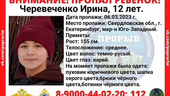 «Внимание! 6 марта пропал ребенок. Место пропажи: Екатеринбург, микрорайон Юго-Западный», — сообщили волонтеры в группе в соцсети «ВКонтакте». Они попросили всех, кто может знать о нахождении девочки, обращаться в поисковый отряд или к представителю полиции.