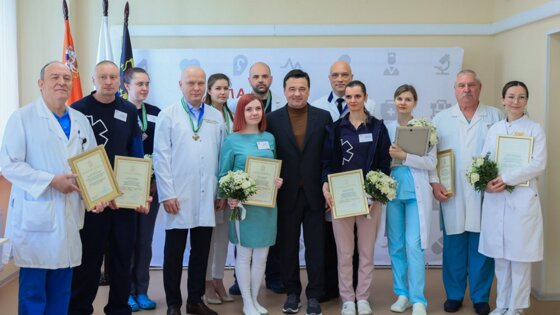 Заведующего отделением Химкинской больницы Новикова Дмитрия, анестезиологов - реаниматологов Бондареву Ирину, Трунову Екатерину и Федорова Павла Воробьев наградил орденом Преподобного Сергия Радонежского.