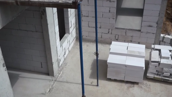 Подрядчик выкладывает наружные стены и внутренние перегородки второго и третьего этажей, прокладывает кабельные линии, устраивает инженерные коммуникации.