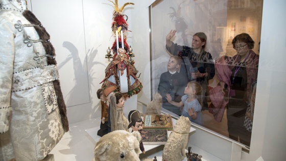 Интересно разглядывать игрушки царских детей. У царевича Алексея белый, немецкой работы плюшевый медведь. Оловянные солдатики. Игрушечная пушка. Домашний кукольный театр - по легенде, семь перчаточных кукол итальянской комедии дель арте имеют сходство с членами семьи Николая II, включая Распутина, рассказала директор ГМЗ "Царское Село" Ольга Таратынова: