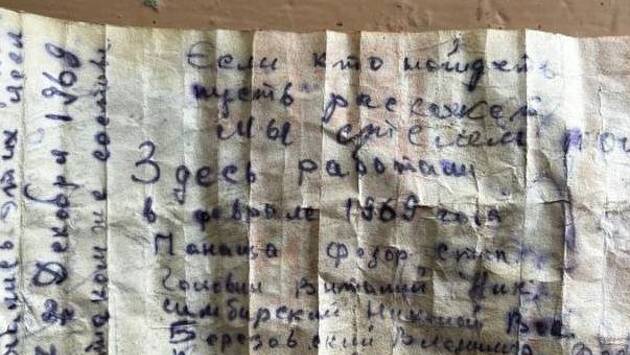 В ходе ремонта в детском саду в Геническом районе Херсонской области рабочие нашли послание из прошлого века. Об этом рассказал в своем Владимир Сальдо.