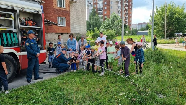 Сотрудники МЧС по городу Вологде рассказали детям о правилах пожарной безопасности, а также провели экскурсию по пожарной машине в рамках социального проекта «Безопасное лето», разработанного ТОС «Псковский».