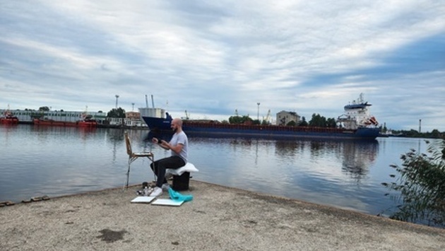 В начале сентября Батраз вместе с другими художниками приехал к нам на пленэры. В один из дней они писали виды порта.
