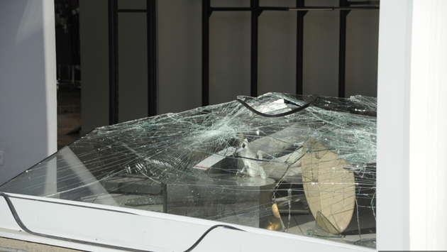 «Посмотрев записи системы видеонаблюдения, мы поняли, что был сделан выстрел из огнестрельного оружия. Эти стеклопакеты имеют очень прочное стекло, его невозможно разбить камнем или булыжником. Видно отверстие от пули, пошли трещины по всему витражу», — передает слова Ольги Е1.