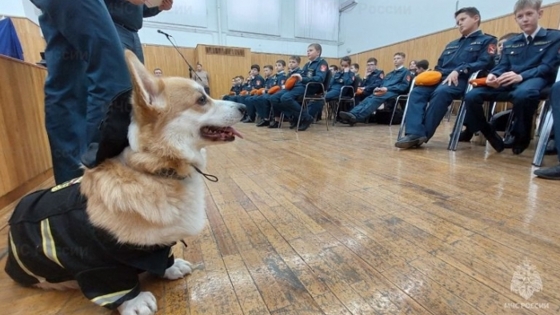 А к кадетам лицея № 9 пришел замечательный внештатный сотрудник Центра управления в кризисных ситуациях – корги Коди служит в необычном отряде под названием «Маруся и друзья». Пушистый спасатель помогал школьникам лучше запоминать правила пожарной безопасности и даже «участвовал» в викторине.