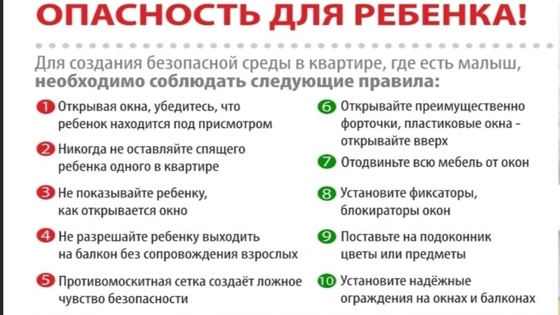 Уважаемые родители Таганского района! Во избежание несчастных случаев, связанных с выпадением малолетних детей из окон, убедительно просим соблюдать следующие меры предосторожности: Установите на окна специальные блокираторы или ручки-замки. Уберите от окон мебель, которая может послужить подставкой для детей. Не оставляйте детей без присмотра вблизи открытых окон. Объясните детям правила безопасного поведения и недопустимость самостоятельного нахождения на подоконниках. Помните, что ответственность за жизнь и здоровье детей лежит на их законных представителях. Недосмотр и халатность могут привести к трагическим последствиям. Соблюдая вышеизложенные меры, вы обеспечите безопасность своим детям и убережете их от непоправимого вреда.