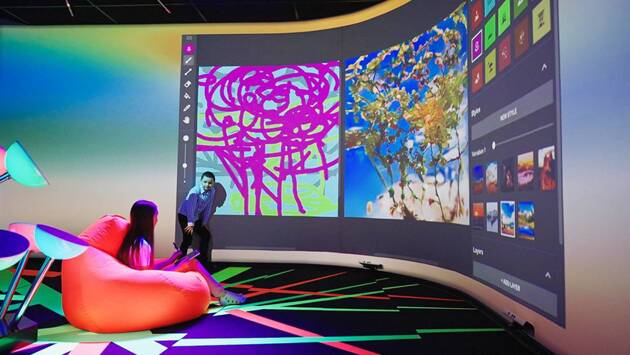— Все воспитанники Центра проходят через это пространство. Оно помогает в снятии мышечного и психоэмоционального напряжения, развитии навыков общения. На экране транслируются успокаивающие проекции: река, поле, лес. Всем этим преподаватель может управлять с помощью экрана. Возможности комнаты применяются при психоэмоциональной диагностике ребят, — рассказала Юлия Крайнова, логопед Центра социальной интеграции Дианы Гурцкая.