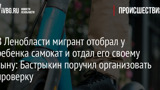 В Ленобласти мигрант отобрал у ребенка самокат и отдал его своему сыну: Бастрыкин поручил организовать проверку