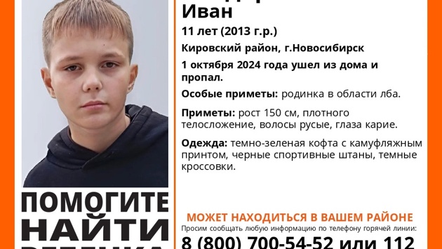 В Новосибирске с 1 октября ищут пропавшего 11-летнего мальчика