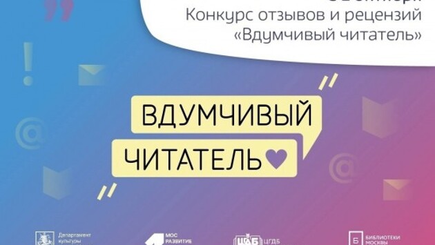 Библиотека №173 приглашает жителей Теплого Стана принять участие в XV Московском конкурсе отзывов и рецензий на новые детские книги «Вдумчивый читатель». Об этом сообщается в соцсетях учреждения.