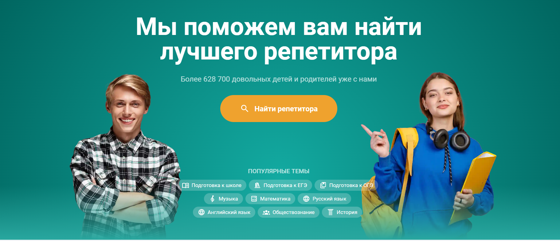 Наверное, крупнейшая образовательная база в России — ею пользуются более сотни тысяч квалифицированных сотрудников. Стоит заметить, что сервис максимально дружественный по отношению к клиентам — поиск специалистов для вас совершенно бесплатен, деньги они получают от репетитора за каждого найденного ученика.