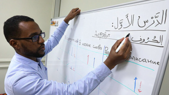 «В РУДН студенты изучают арабский на нескольких факультетах, в том числе на филологическом, юридическом, экономическом и на факультете гуманитарных и социальных наук. На направлении "Лингвистика" студенты изучают язык глобально, чтобы в будущем быть и переводчиками, и преподавателями, и лингвистами в этой области. В этом учебном году впервые набрали абитуриентов на направление "Востоковедение и африканистика". Будем готовить арабистов, которые в будущем смогут стать специалистами и аналитиками в области экономики, политики, философии, истории арабских стран. Они углубленно изучают регион и арабский язык. Кроме литературного наши преподаватели — носители языка — обучают студентов и разговорному арабскому, и "белому диалекту". Это язык междиалектного общения, благодаря которому, будучи на стажировке, они смогут разговаривать с местными. К выпуску бакалавры должны владеть языком на уровне В2 или С1, но все зависит от самого студента», — Наталья Дубинина, кандидат филологических наук, доцент кафедры иностранных языков филологического факультета РУДН.